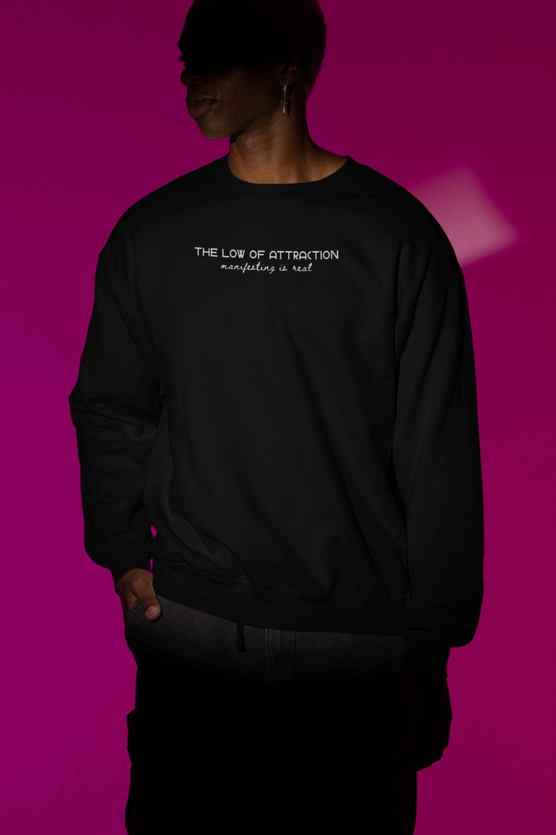 This unisex fleece crewneck pairs a clean “THE LAW OF ATTRACTION – manifesting is real” front print with everyday-ready warmth. Mid-weight cotton-poly fleece feels soft inside, smooth outside, and holds its shape wash after wash thanks to a rib-knit collar, cuffs, and waistband. A year-round staple for mindset, yoga, journaling, and cozy streetwear fits.